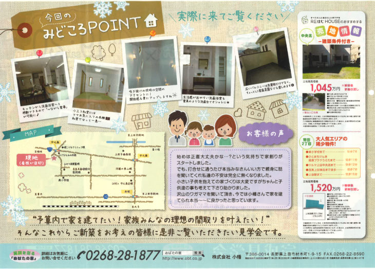 HOMEイベント情報上田市中之条M様邸 完成見学会 上田市中之条M様邸 完成見学会(終了しました) 会場 M様邸 住所 上田市中之条 アクセスマップを確認する イベント情報一覧はこちら おばたの家について 会社案内代表挨拶会社概要企業理念アクセスマップ 施工事例 施工事例一覧 WB HOUSE コンパクトハウス リノベーション 注文住宅 お客様の声 お客様の声一覧 お引き渡し 1周年祝い お役立ち情報 選ばれる理由 WB HOUSE コンパクトハウス リフォーム 不動産情報 最新イベント・チラシ情報 アフターフォロー 施工の流れ よくある質問 お問い合わせ お問い合わせ スタッフブログ 記事の一覧を見る javascriptが無効になっています。 株式会社小幡 HOME 会社案内 会社案内代表挨拶会社概要企業理念アクセスマップ 施工事例一覧 お客様の声一覧 お役立ち情報 選ばれる理由WB HOUSEコンパクトハウスリフォーム不動産情報最新イベント・チラシ情報アフターフォロー施工の流れよくある質問 お問い合わせ お問い合わせ Copyright © 2017 おばたの家 All Rights Reserved.