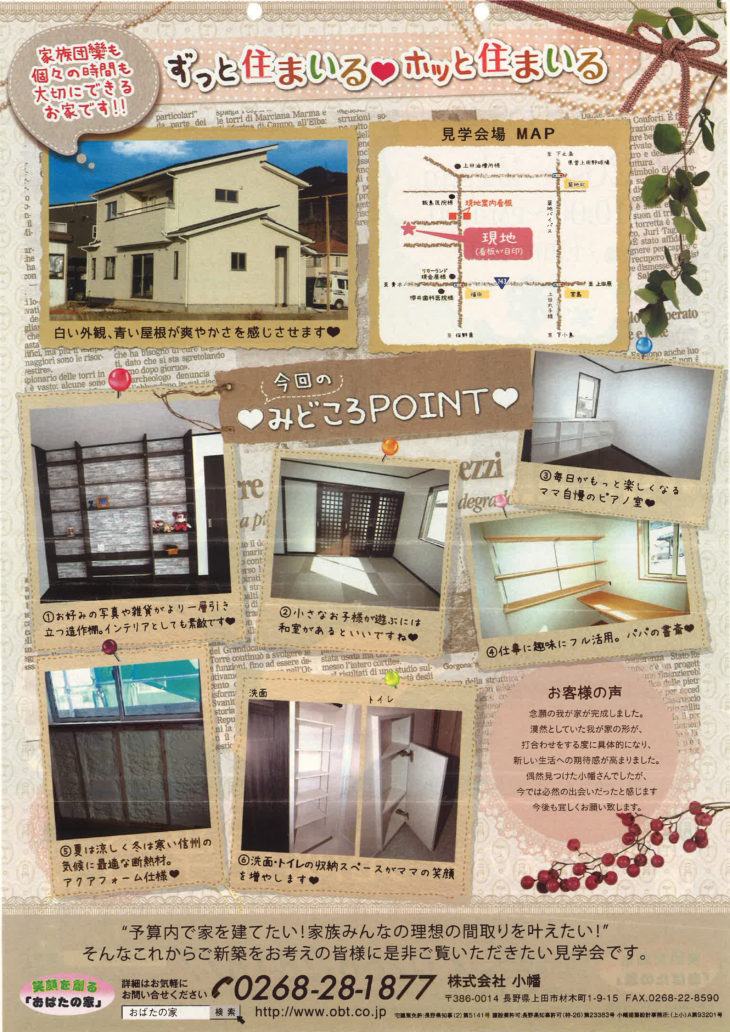 HOMEイベント情報上田市芳田K様邸 完成見学会 上田市芳田K様邸 完成見学会(終了しました) 会場 K様邸 住所 上田市芳田 アクセスマップを確認する イベント情報一覧はこちら おばたの家について 会社案内代表挨拶会社概要企業理念アクセスマップ 施工事例 施工事例一覧 WB HOUSE コンパクトハウス リノベーション 注文住宅 お客様の声 お客様の声一覧 お引き渡し 1周年祝い お役立ち情報 選ばれる理由 WB HOUSE コンパクトハウス リフォーム 不動産情報 最新イベント・チラシ情報 アフターフォロー 施工の流れ よくある質問 お問い合わせ お問い合わせ スタッフブログ 記事の一覧を見る javascriptが無効になっています。 株式会社小幡 HOME 会社案内 会社案内代表挨拶会社概要企業理念アクセスマップ 施工事例一覧 お客様の声一覧 お役立ち情報 選ばれる理由WB HOUSEコンパクトハウスリフォーム不動産情報最新イベント・チラシ情報アフターフォロー施工の流れよくある質問 お問い合わせ お問い合わせ Copyright © 2017 おばたの家 All Rights Reserved.