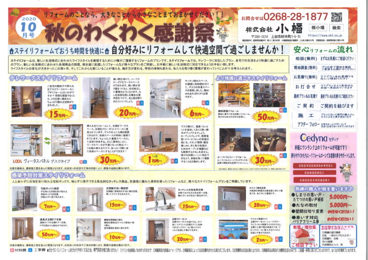 そしてこれからも家にいる時間が増え、働き方も学校の体制も変わりつつあります。そこで、小幡では自分好みにリフォームして快適空間で過ごしていただけるようにこのチラシを作成致しました。
